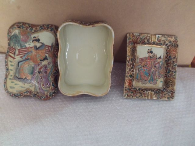 Caja y cenicero Satsuma decoración antigua