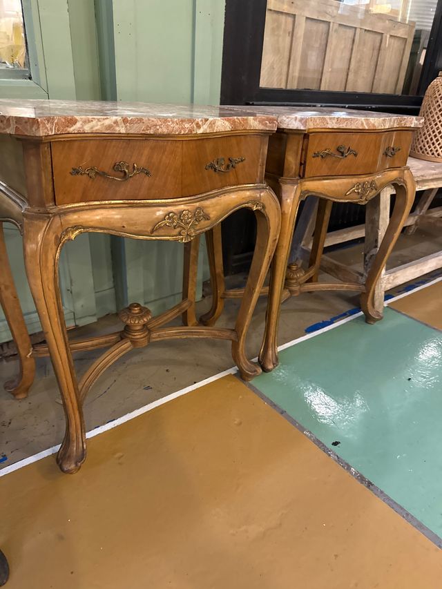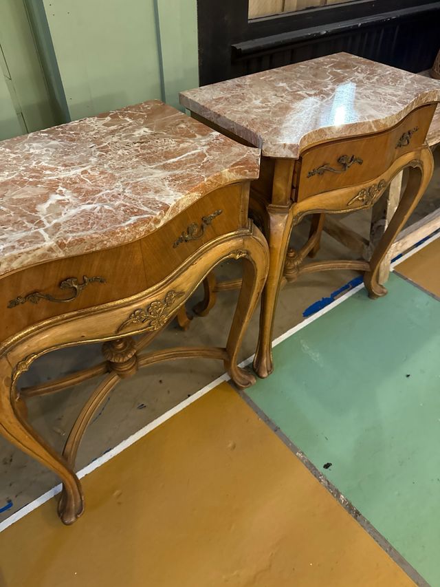 Pareja Mesitas Noche Mármol y Madera