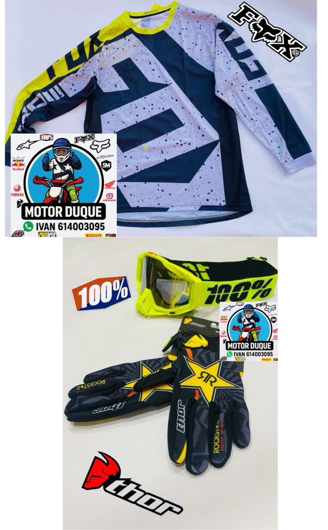 Camiseta fox y guantes rockstar y gafas 100% mtb