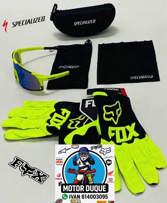 Guantes mtb fox camiseta fox y gafas 100% bici