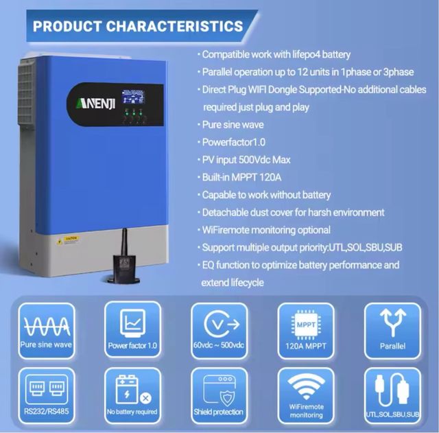 Inversor 6,2 KW 48V On Grid / Off Grid.