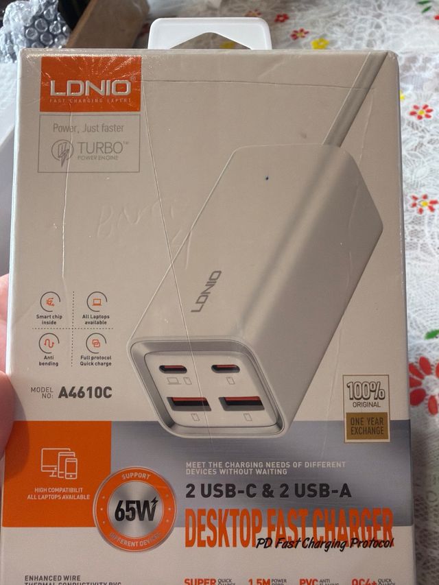 Cargador Rápido Escritorio LDNIO 65W 4 Puertos
