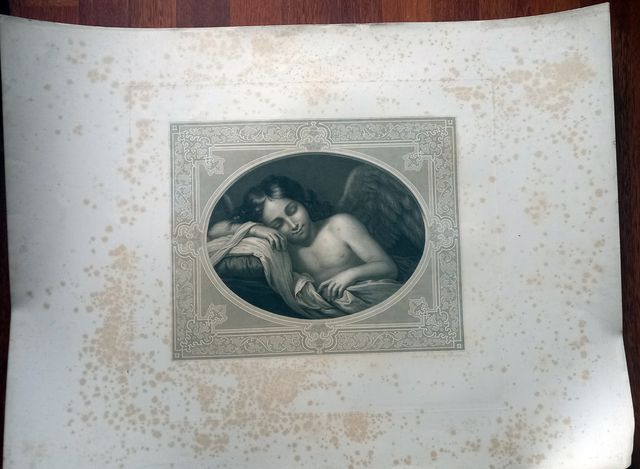 Grabado del Corregio Angel durmiente. siglo XIX