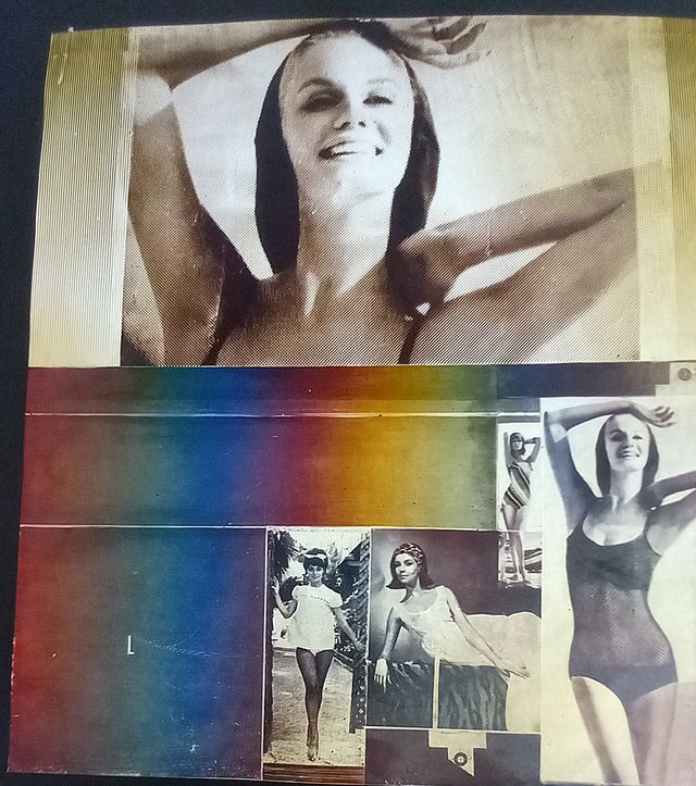 Litografía años 60. Collage pop firmado.