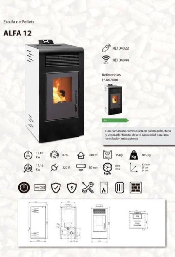 Estufa de Pellets Alfa 12 11KW- Nueva MAD67080