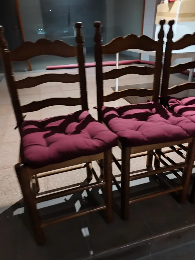 Sillas de madera con cojines rojos