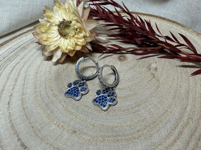 Pendientes Plata Huella Perro Azul
