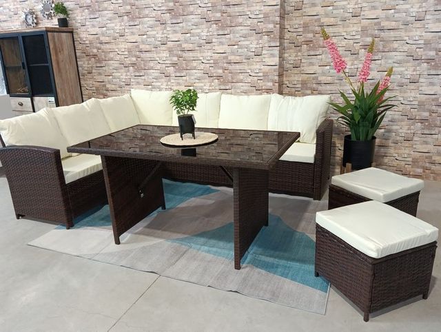 Juego terraza mimbre marrón-beige