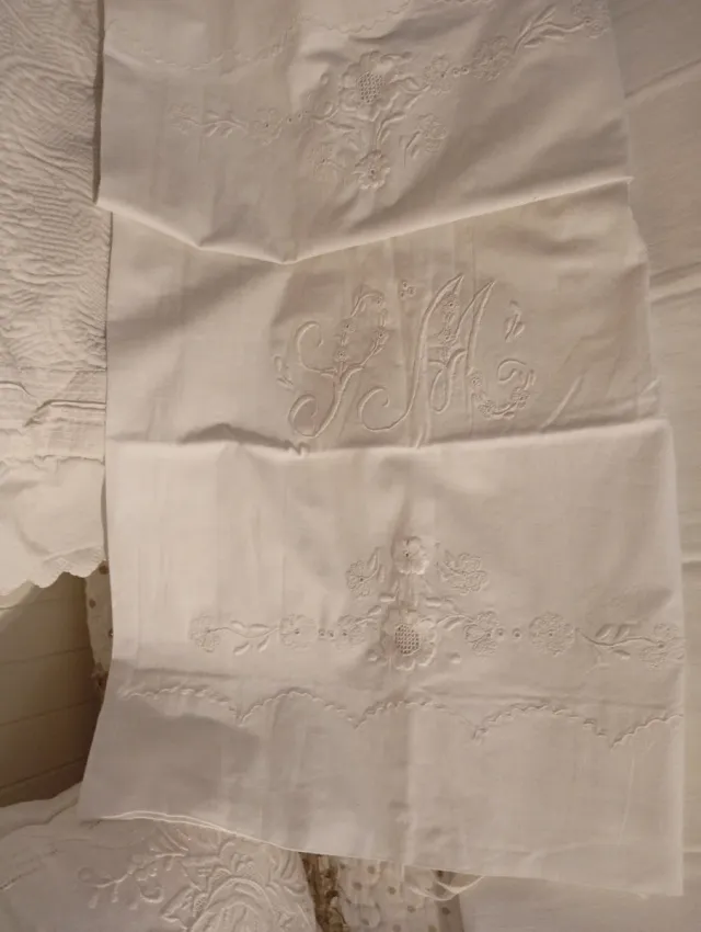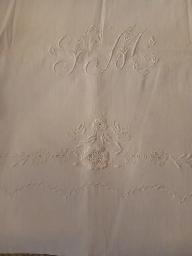 Sábana antigua bordada de algodón