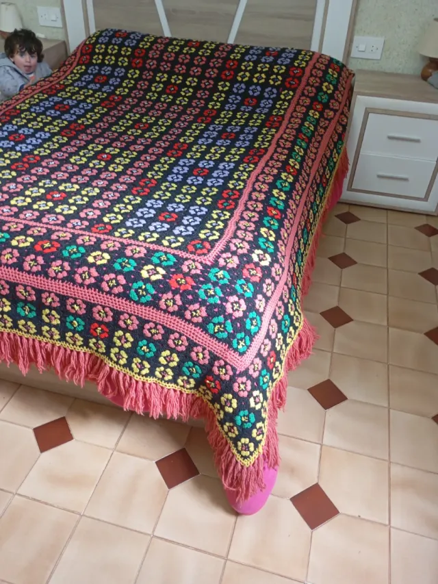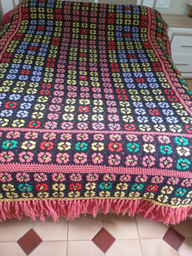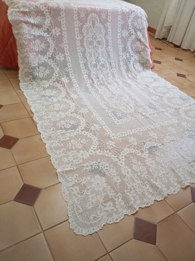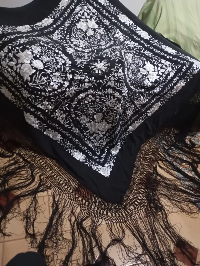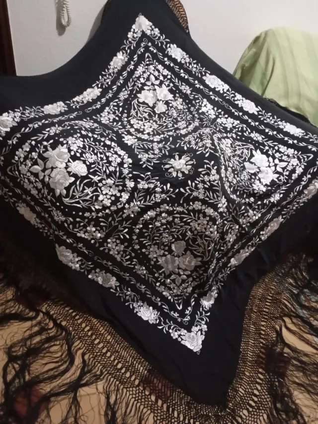 Mantón Manila Bordado Mano Seda Antiguo como nuev