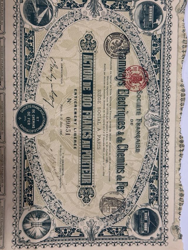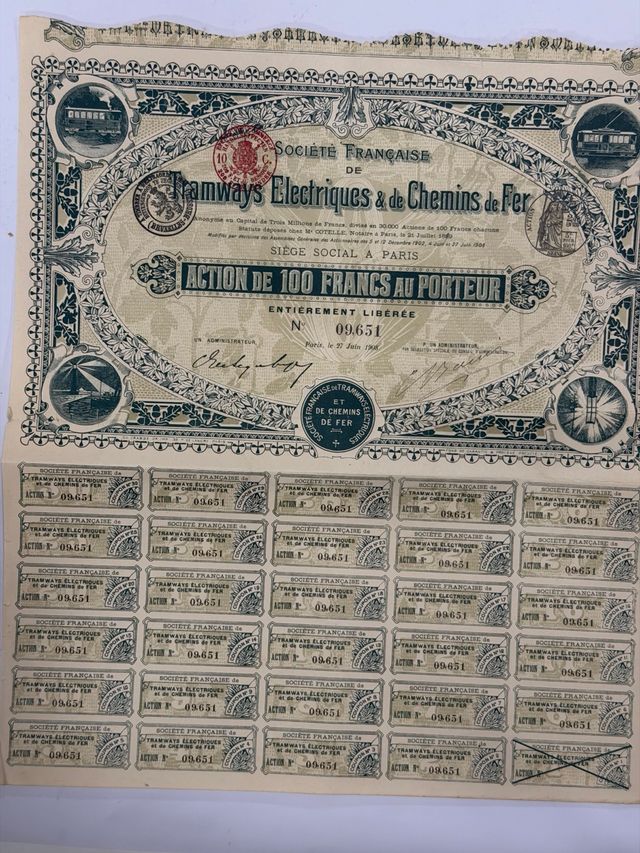 Acción 100 Francos Tramways Electriques