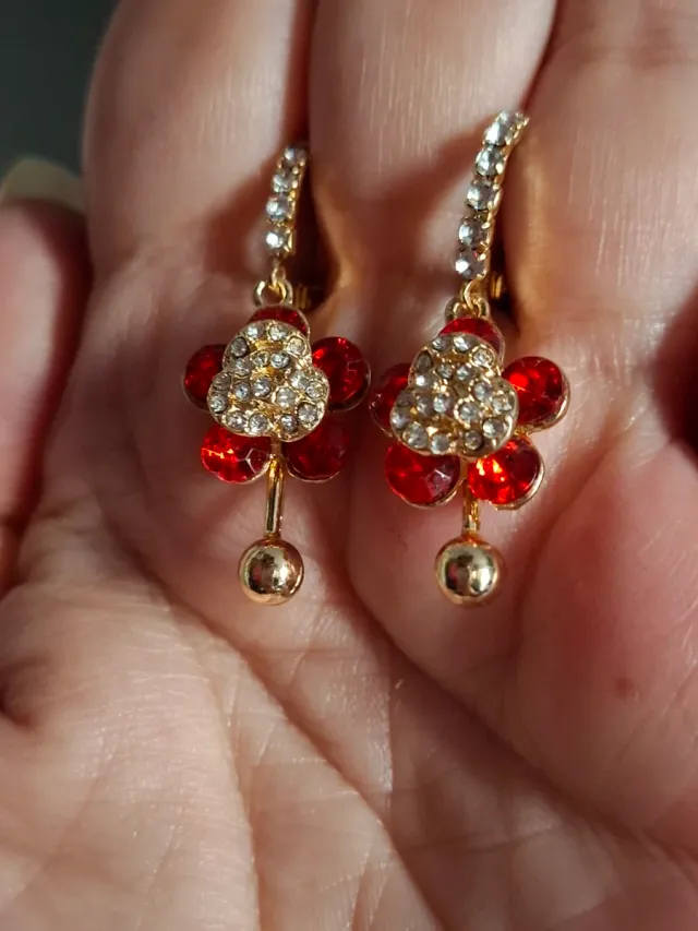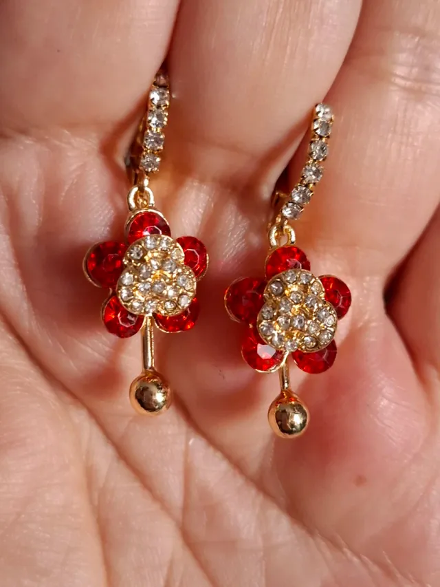 Pendientes flor dorados y rojos
