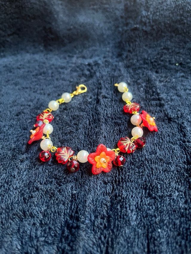 Pulsera con flores y perlas