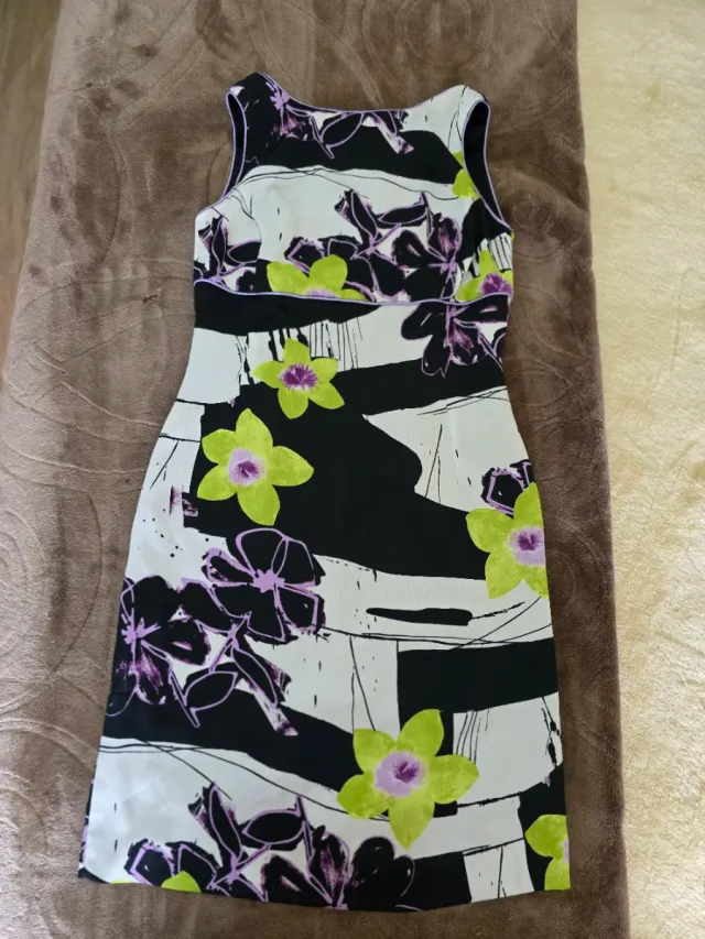 Vestido de fiesta floral negro y rosa