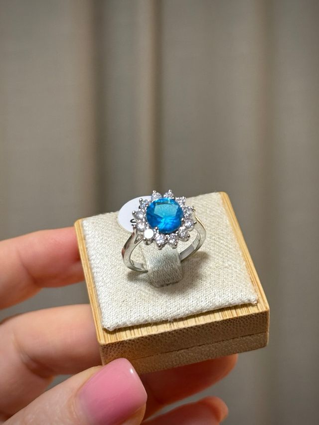 Anillo azul con circonitas