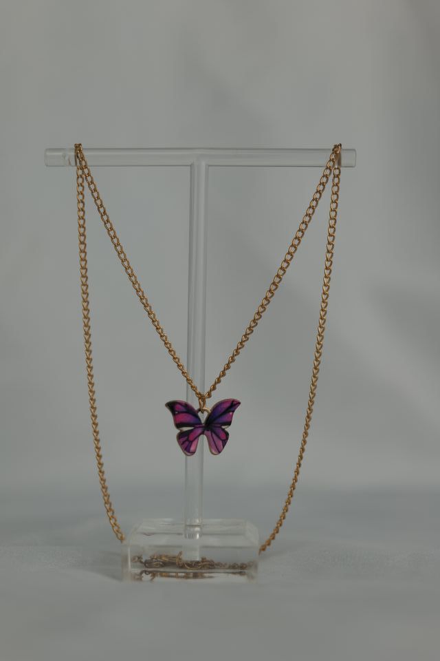 Collar Mariposa Morada Colgante Dorado