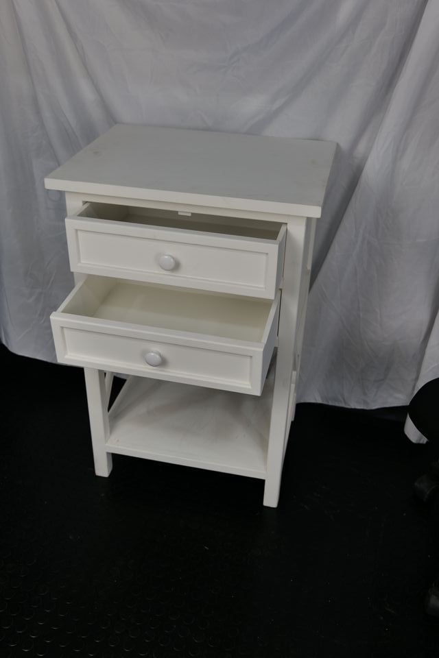 Mesilla de noche blanca con cajón y estante