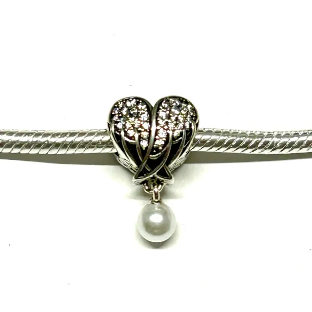 Charm Corazón Alado con Perla Plata