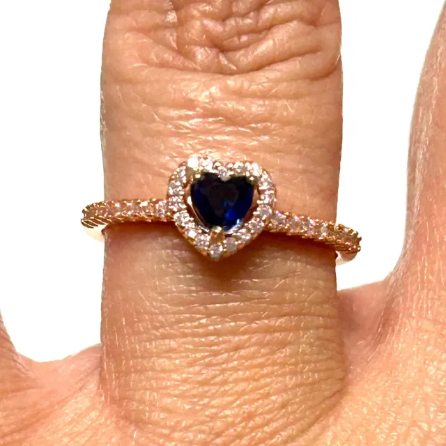 Anillo Corazón Zafiro Azul Oro Rosa