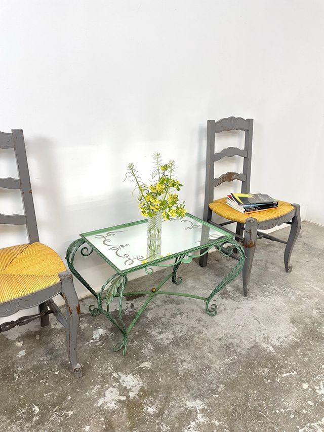 350 €Mesa comedor/despacho cristal + 4 sillas