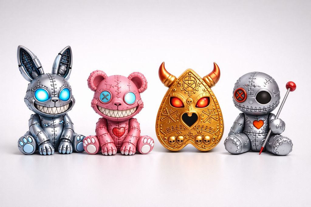 Acerca deFiguras 3D con personalidad. Diseños propios estilo creepy-cute, ediciones limitadas y acabados premium. Impresión de alta calidad, cuidando cada detalle. Piezas originales para decorar, coleccionar o regalar. Encargos personalizados disponibles.