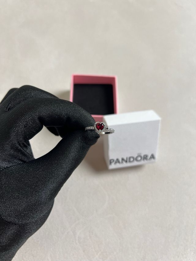 Anillo Pandora Corazón Rojo y Plata