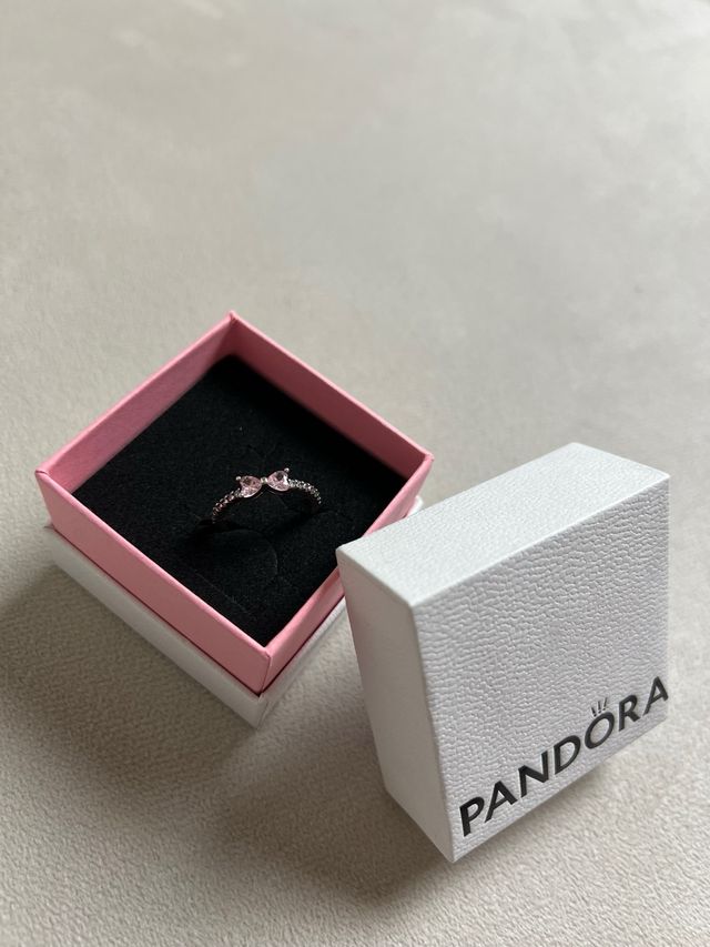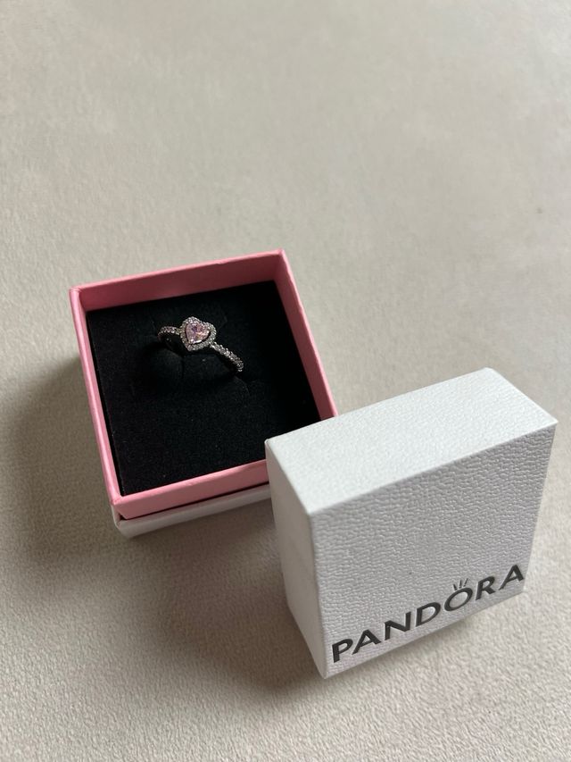 Anillo Pandora Corazón Rosa Plata