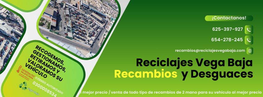 Acerca deDesguaces y Reciclajes Vega Baja en Torrevieja, autorizado (nro.: 128CAT/VFU) con mas de 10 años de top experiencia. Ofrecemos baja gratuita y recambios, con 100.000 piezas, 1.000 vehículos y 10.000 m en instalaciones garantizan servicio y calidad.