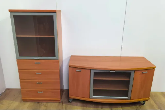 MUEBLE SALON COMEDOR CON RUEDAS Y VITRINA