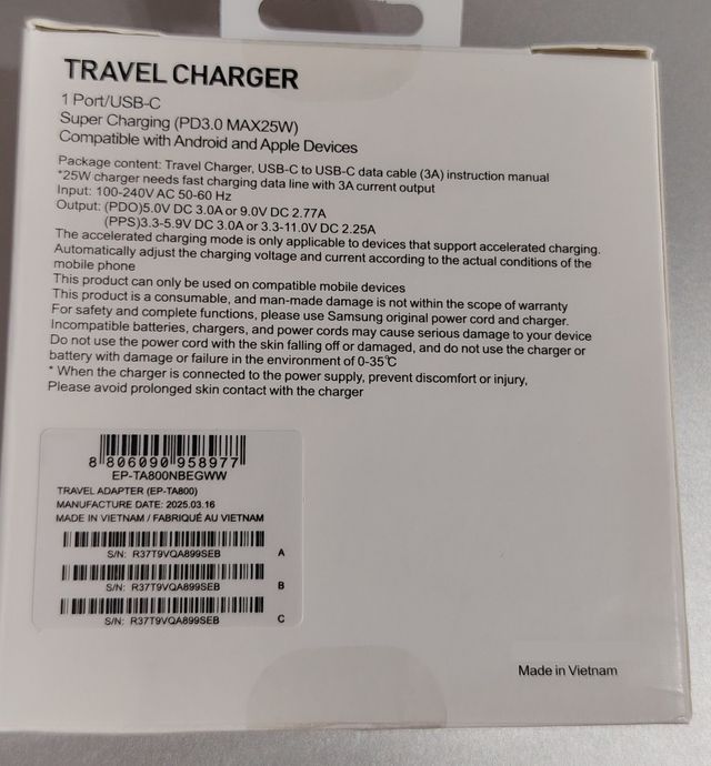 45W Cargador compatible Samsung USB-C Carga Rápida