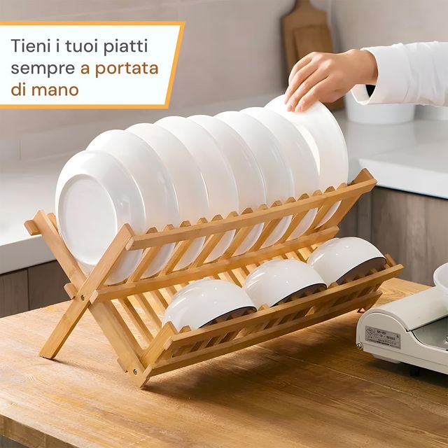 Escurreplatos Bambú Natural Plegable dos Niveles