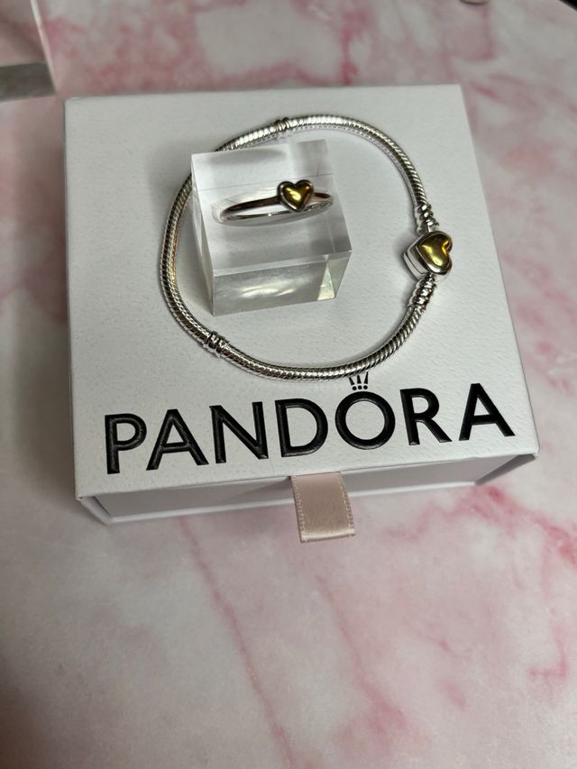 Pandora Pulsera y Anillo Corazón Oro y Plata