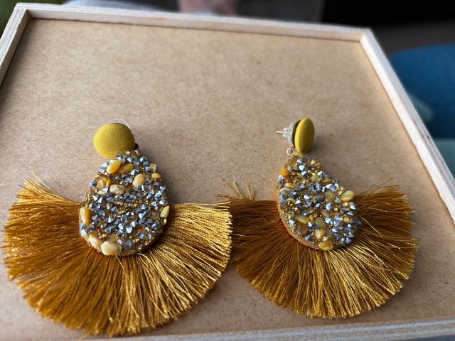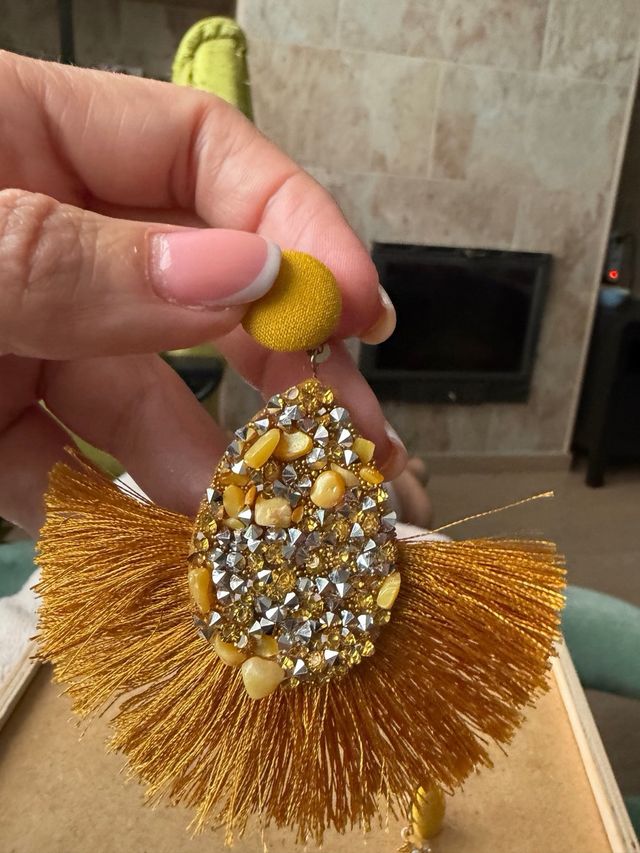 Pendientes dorados y amarillos con pedrería