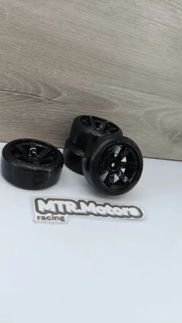 ✅ Llantas RC 1/10 negras con neumaticos para drift