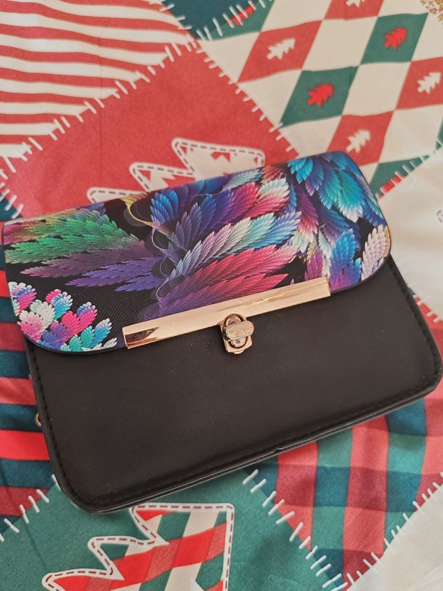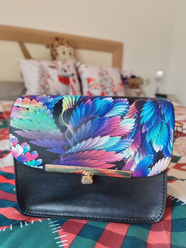 Bolso bandolera negro con estampado