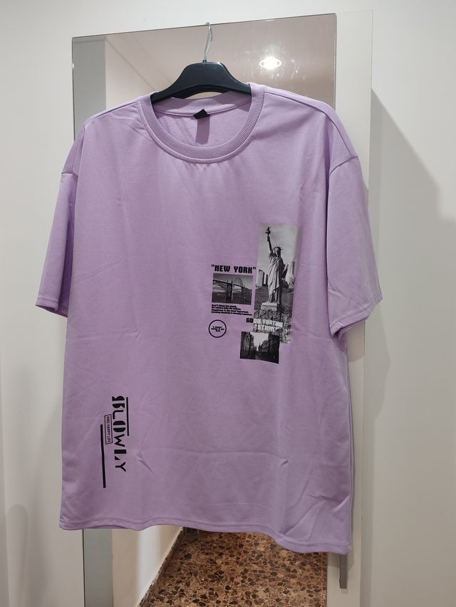 Camiseta Morada Manga Corta Estampada