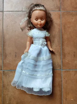 Muñeca Nancy, original, vestida de comunión. De Famosa. Cierra y abre los ojos al tumbarla y levantarla. Tiene alguna marca que se puede ver en las fotos. muñeca, muñeco, coleccionista, coleccionismo, colección