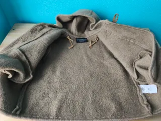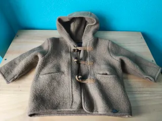 Parka de la marca Géiswein para bebé, ideal para mantenerlos abrigados. - Color camel. - Cierre con botones de madera y trabillas. - Capucha. - Bolsillos delanteros. - Lana virgen