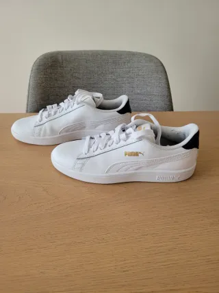 Zapatillas Puma Smash V2 L para adulto. - Diseño clásico y versátil. - Cierre con cordones. - Detalle de logo en dorado. Usado 3 veces.