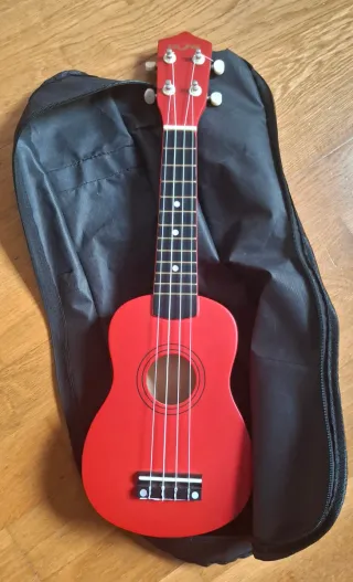 Ukelele de iniciación en color rojo, perfecto para empezar a tocar. Incluye funda para su transporte. Como nuevo, sólo un pequeño golpe, ver foto. - Color rojo vibrante. - Incluye funda protectora.