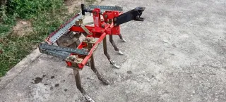 Cultivador agrícola de tres brazos, ideal para preparar la tierra antes de sembrar. Se acopla a tractores. - Estructura principal de color rojo. - Brazos de metal con puntas reforzadas. - Sistema de enganche para tractor.