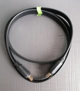Cable HDMI plano negro. - Longitud: 1 m. - Conectores HDMI. - Cable de transmisión de audio y video alta velocidad. Compra más productos de mi catálogo y paga un solo envío, para ello utiliza "CREAR LOTE"