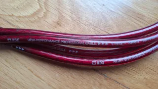 Cable de alta calidad para car audio. 99% Cobre libre de oxígeno OFC - Marca: KDX - Tipo: Cable de corriente y masa - Medida: 6 mm² - Calibre: AWG 9 - Diseño: Rojo y negro transparente