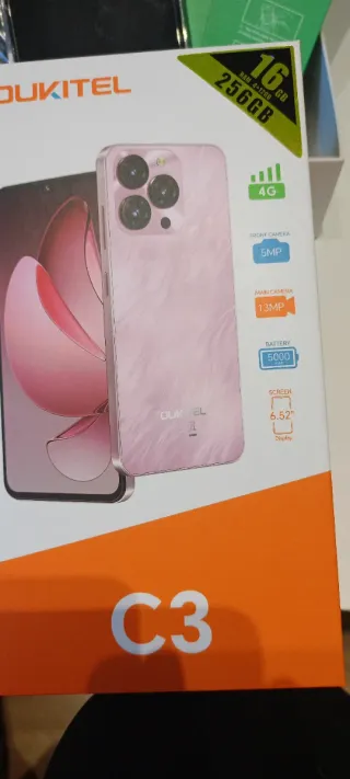 Teléfono móvil OUKITEL C3 con acabado en color rosa. Disfruta de una gran capacidad de almacenamiento y memoria. - 256 GB de almacenamiento interno. - 16 GB de RAM. - Cámara principal de 13 MP. - Cámara frontal de 5 MP. - Batería de 5000 mAh. - Pantalla de 6.52 pulgadas. - Conectividad 4G. Dos fundas de silicona y dos protectores de pantalla incluidos
