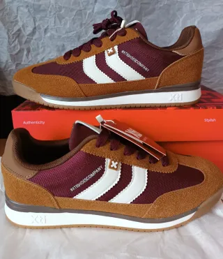 Zapatillas deportivas de la marca XTI en color burdeos y marrón Sin estrenar, TALLA 42 - Diseño deportivo. - Cierre con cordones. - Suela de goma.
