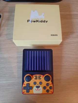 Consola PowKiddy - Color naranja y multicolor. A veces arranca, a veces salen esas líneas. Se entrega sin sd ni cable de carga. Se entrega caja original y pegatinas