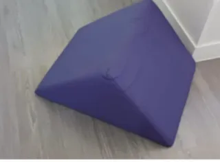 Cuña de espuma utilizada para rehabilitación. - Color morado. - Forma triangular.