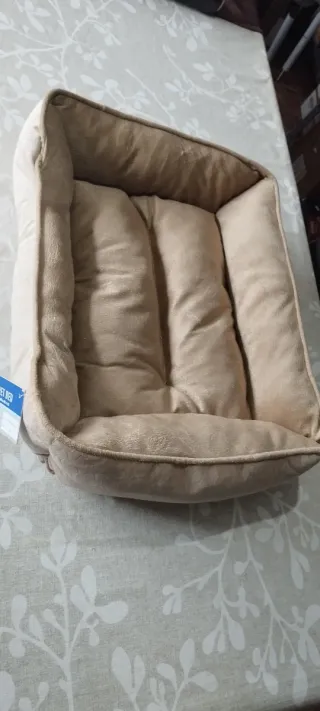 Más GANGAS EN MI PERFIL Cama para perro o gato. Súper mullida, con bordes acolchados para que apoye la cabeza como un señor/a 😌 Color beige con interior oscuro, discreta y elegante (no canta en el salón). 📏 Medidas exterior: 46 cm x 56 cm Medidas interior 30cmx40cm.. Alto 12 cm Medidas aproximadas.. 🧼 Lavable a máquina (ciclo suave, en frío) 🐾 Ideal para mascotas pequeñas o medianas tranquilas 📦 Material: 100% poliéster