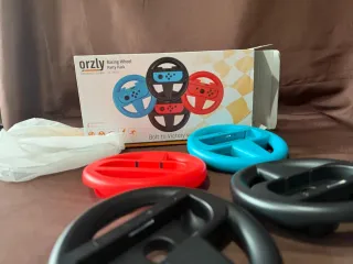 MÁS GANGAS EN MI PERFIL Pack Orzly Racing Wheel Party Pack para Nintendo Switch, totalmente nuevo. Incluye 4 volantes para jugar en grupo 🎮 🔹 4 volantes incluidos (rojo, azul y negros) 🔹 Compatibles con Joy-Con 🔹 Perfectos para Mario Kart y juegos de conducción 🔹 Diseño ligero y cómodo 🔹 Montaje rápido del Joy-Con 🔹 Marca Orzly (calidad buena) 📦 Caja original incluida 📌 Estado: NUEVO, sin uso Ideal para fiestas, familia, niños… o adultos