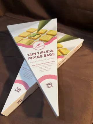 Más GANGAS EN MI PERFIL Caja de mangas pasteleras sin boquilla (tipless), nuevas a estrenar, precintadas y sin abrir. Ideales para repostería, decoración de tartas, cupcakes, galletas, chocolates… 📦 Contenido: ✔ 400 mangas desechables ✔ Tamaño: 14 pulgadas (35,5 cm) ✔ Antideslizantes ✔ Sellado fino y resistente ✔ Punta ajustable (cortas a la medida que quieras) 🍰 Perfectas tanto para uso doméstico como profesional.12 € cada pack de 400 unidades
